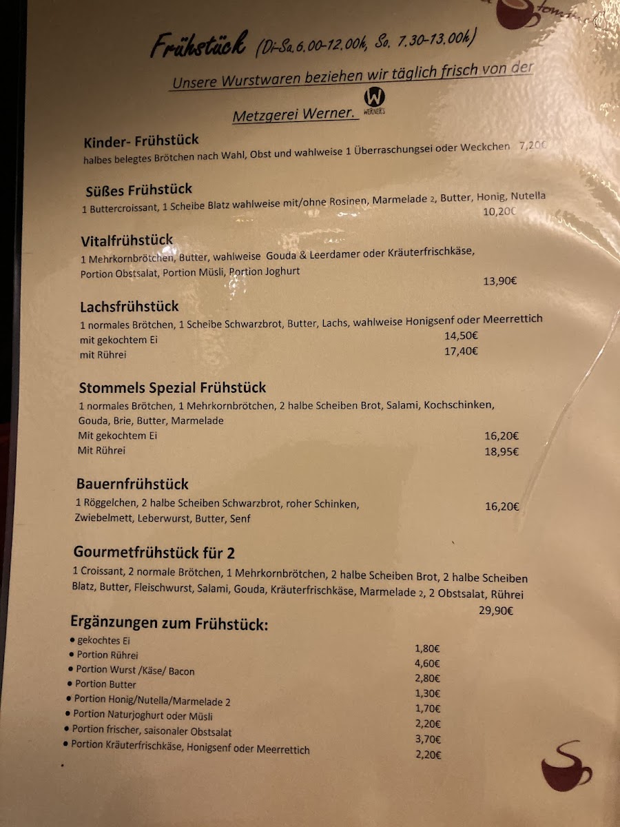 When it comes to the menu, Café Stommel shines with its array of offerings. Customers rave about their substantial and beautifully presented breakfasts, including the famous Stommel's Spezialfrühstück, served with an excellent selection of fresh rolls and a steaming cup of expertly brewed coffee or tea. Each bite of breakfast feels like a lovingly prepared gift to your senses, ensuring a bright start to your day.